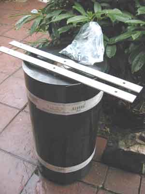 Mit Hilfe eines Minibaggers oder von Hand mit dem Spaten (siehe Drainagespaten), einen schmalen, 65 cm tiefen Graben ausheben. Sperre in den Graben stellen. Die Rhizomsperre sollte noch -5 cm herausschauen. Die Enden sind bereits überlappend mit Alu-Verschlussschienen verschrauben. |